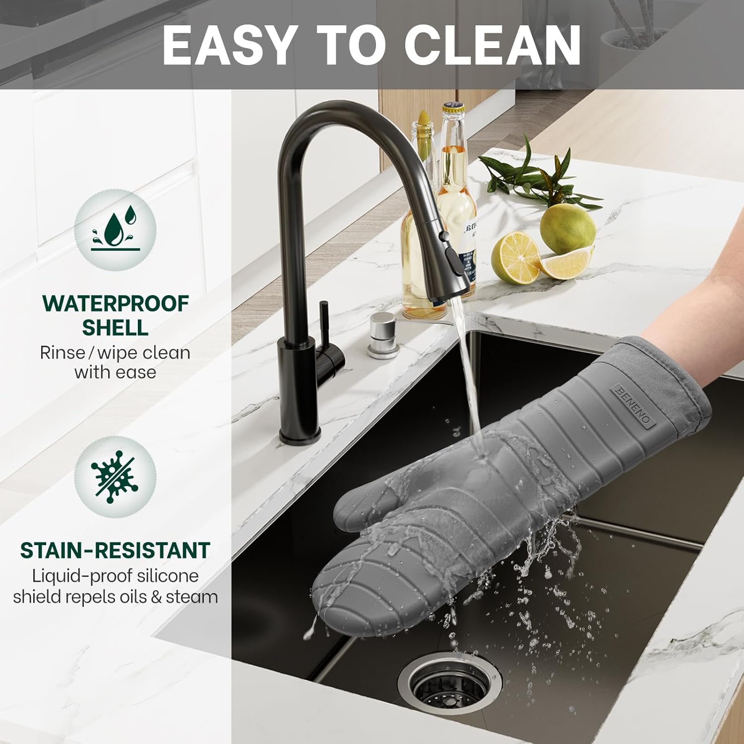 - Superior Heat Resistant & Waterproof: Crafted with high-quality BPA-free soft silicone, these oven mitts provides superior heat resistant up to 500°F with reliable waterproof shell for repels heat, steam and hot liquid, ensuring safely handling hot baking sheets, grill pans, and cookware straight from the oven or stovetop, no more burn risk of hot liquids, gravies or sauces