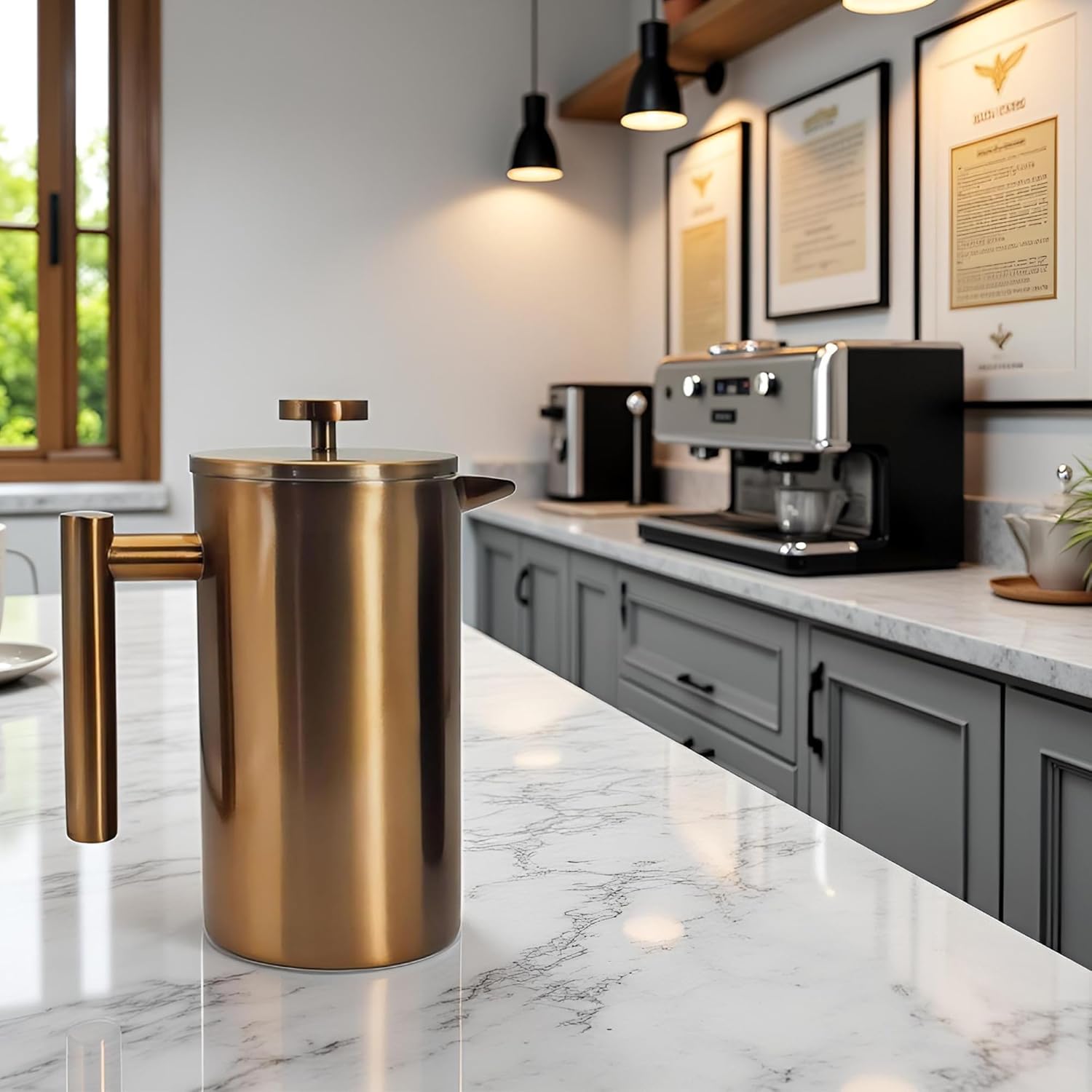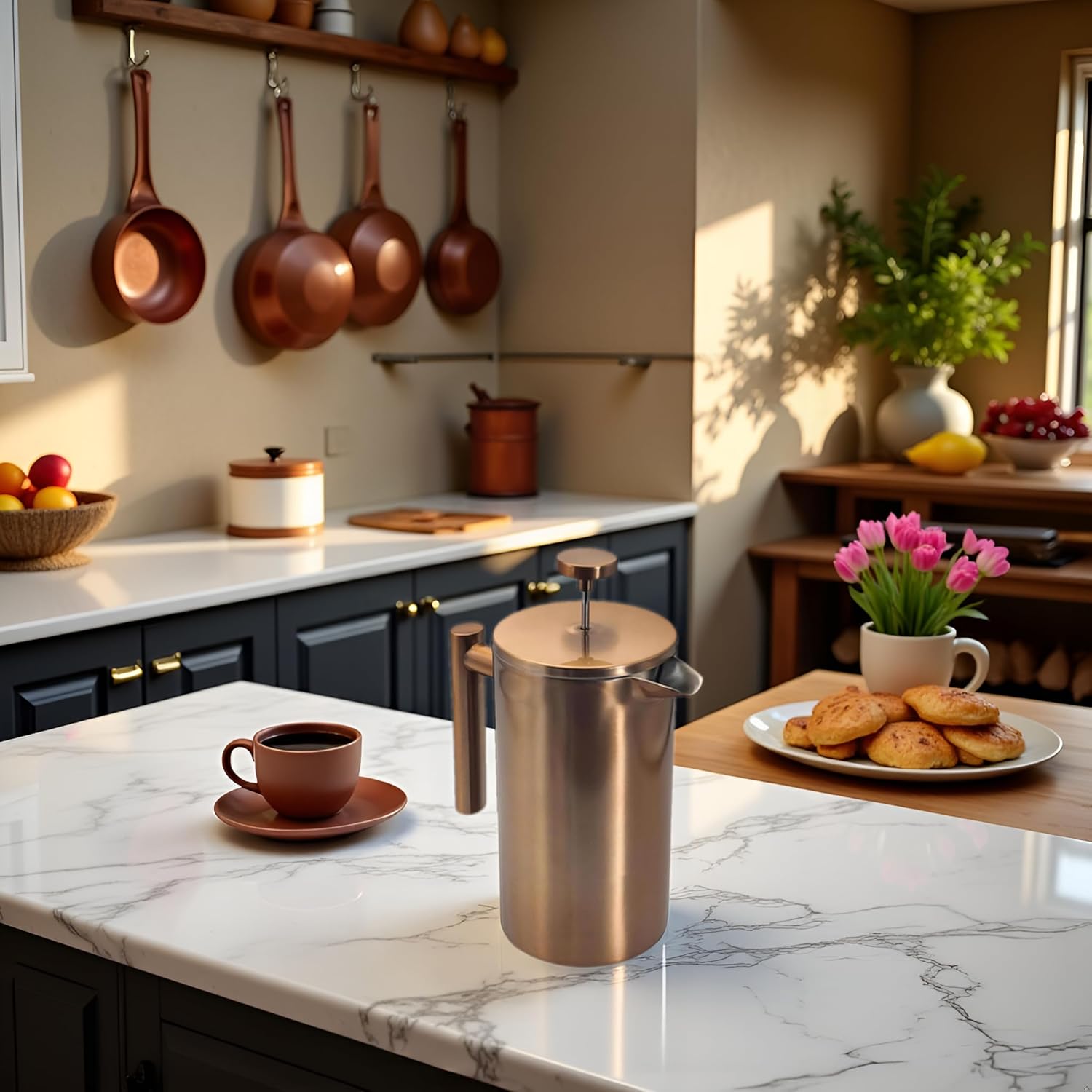 YJX 34oz Coffee Maker, Stainless Steel French Press, 1 Liter Camping Coffee Pot, Tea Maker, 34 Ounce Travel Coffee Presses, Heat Resistant Double Insulated (Coppery)