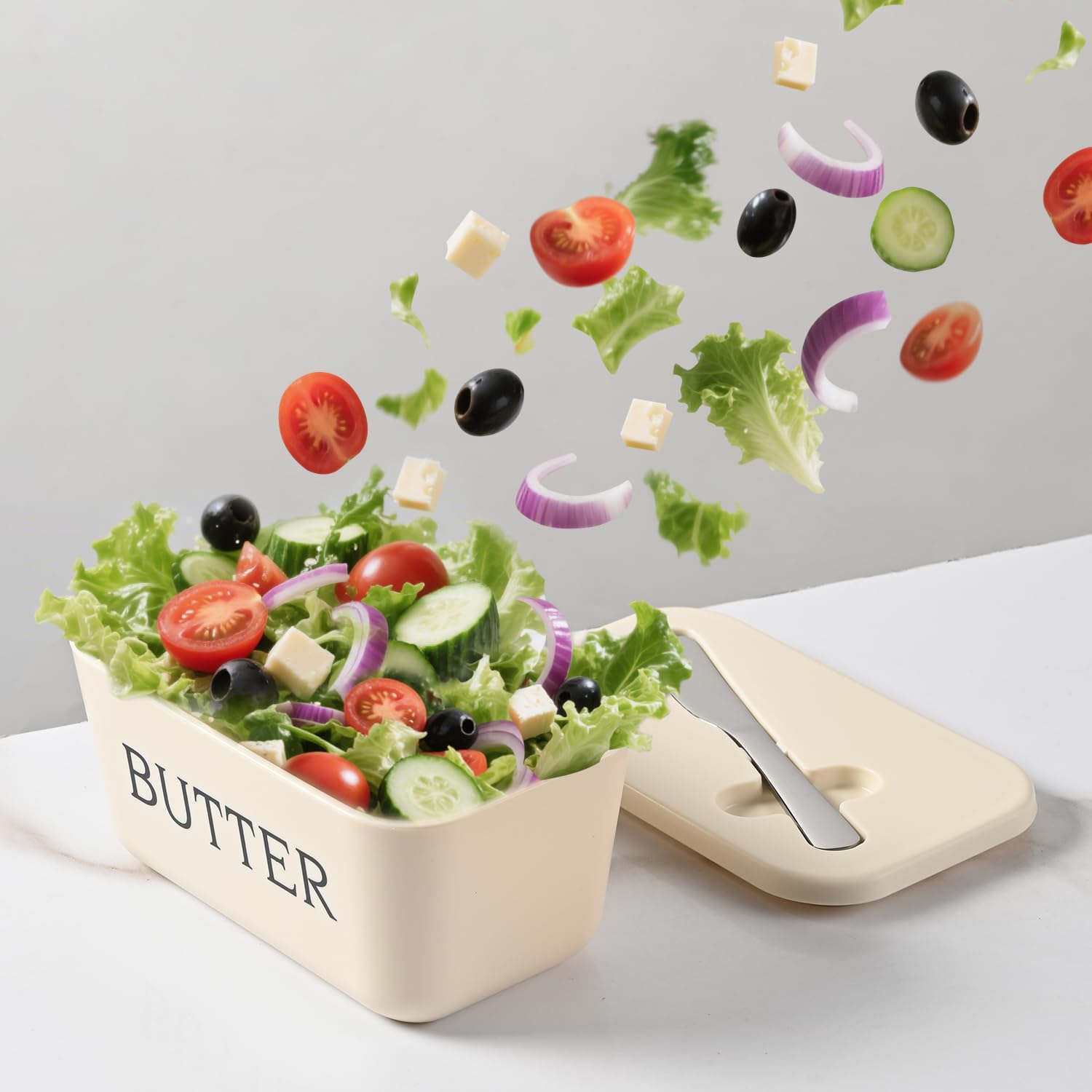 - πͺ Includes Stainless Steel Butter Knife β Comes with a durable, rust-resistant butter knife that fits neatly on or inside the lid for easy access.