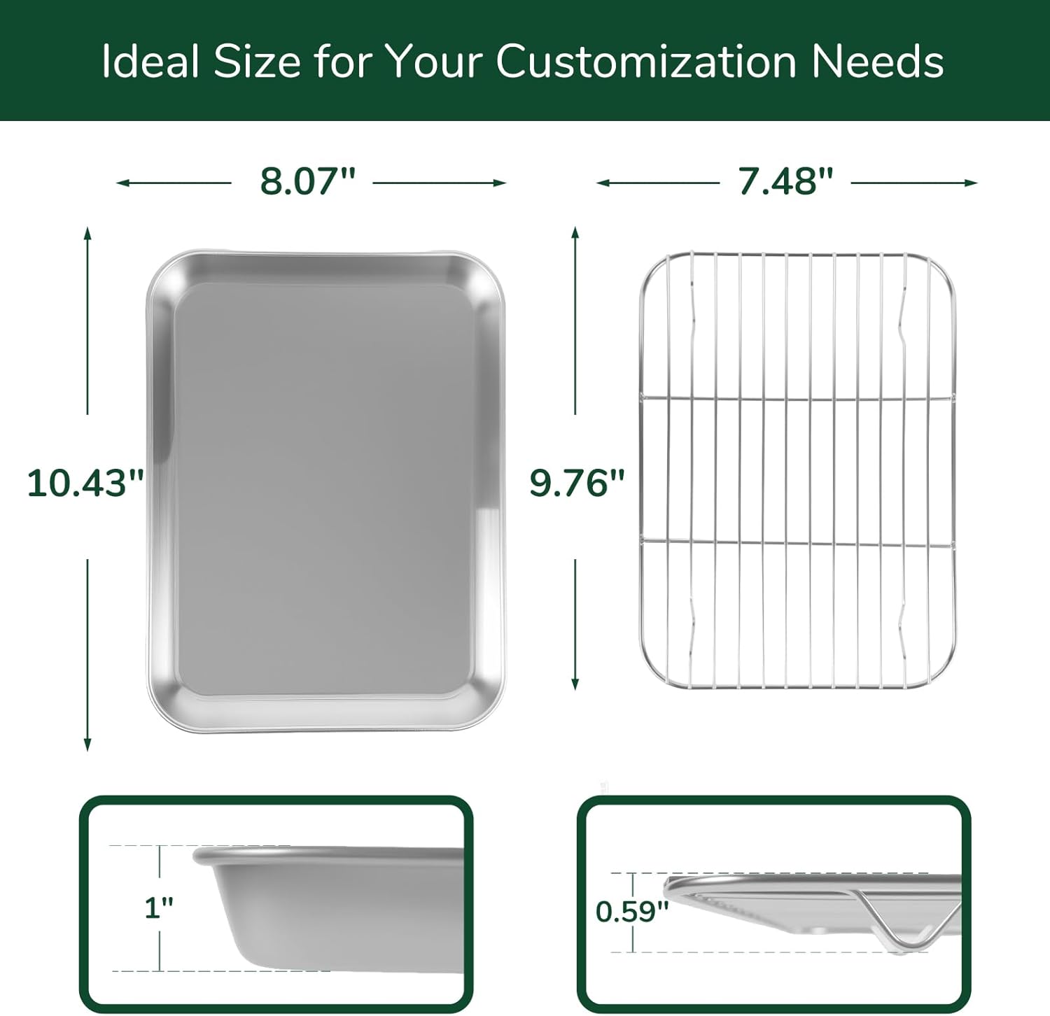 18/0 Stainless Steel Baking Sheet with Cooling Rack, 10.4 Inch Oven-Safe Non-Toxic Cookie Sheets for Baking, Coating Free & Rust Resistant for Healthy Family Baking, Easy to Clean, Heavy Duty