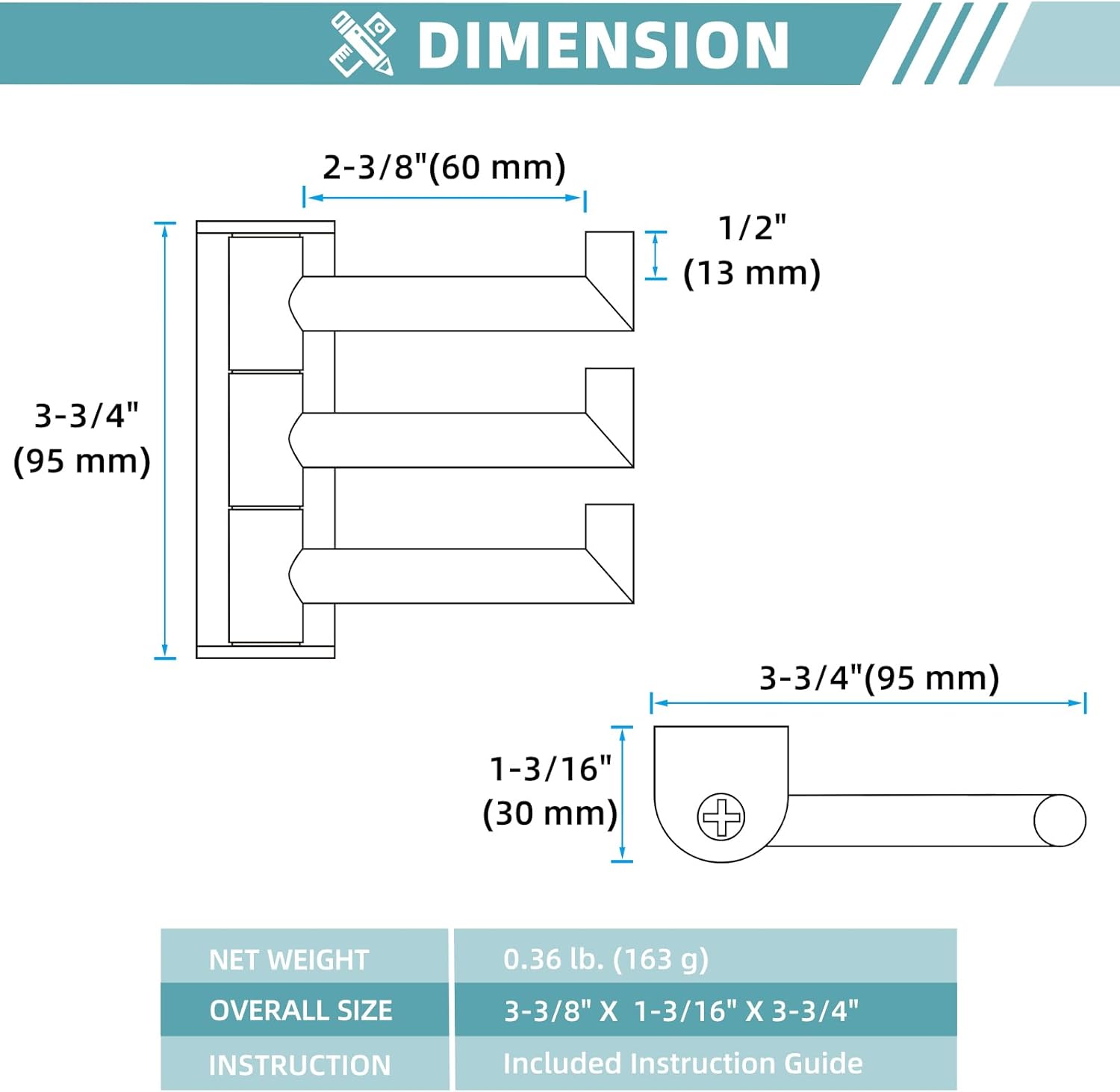 Suyar Swivel Towel Hook 3 Arms, SUS 304 Stainless Steel Coat Robe Holder, Foldable Wall Hook, Matte Black