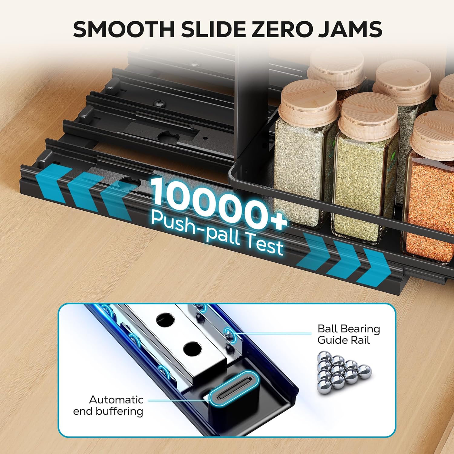 - BALL BRARINGS GUIDE RAIL--Smooth pull-out, automatic buffering at the end