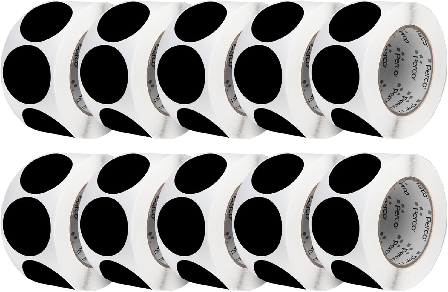 Perco Black 3-Inch Perforated Circle Dot Sticker Labels — 10 Rolls, 5,000 Round Stickers — with Permanent Adhesive for Moving Boxes, Sale Signage, Displays, Status Messaging—Made in USA
