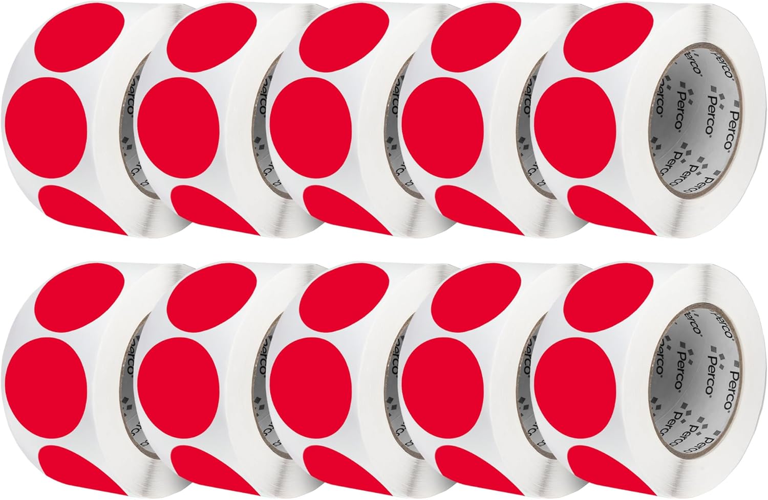 Perco Red 3-Inch Perforated Circle Dot Sticker Labels — 10 Rolls, 5,000 Round Stickers — with Permanent Adhesive for Moving Boxes, Sale Signage, Displays, Status Messaging—Made in USA