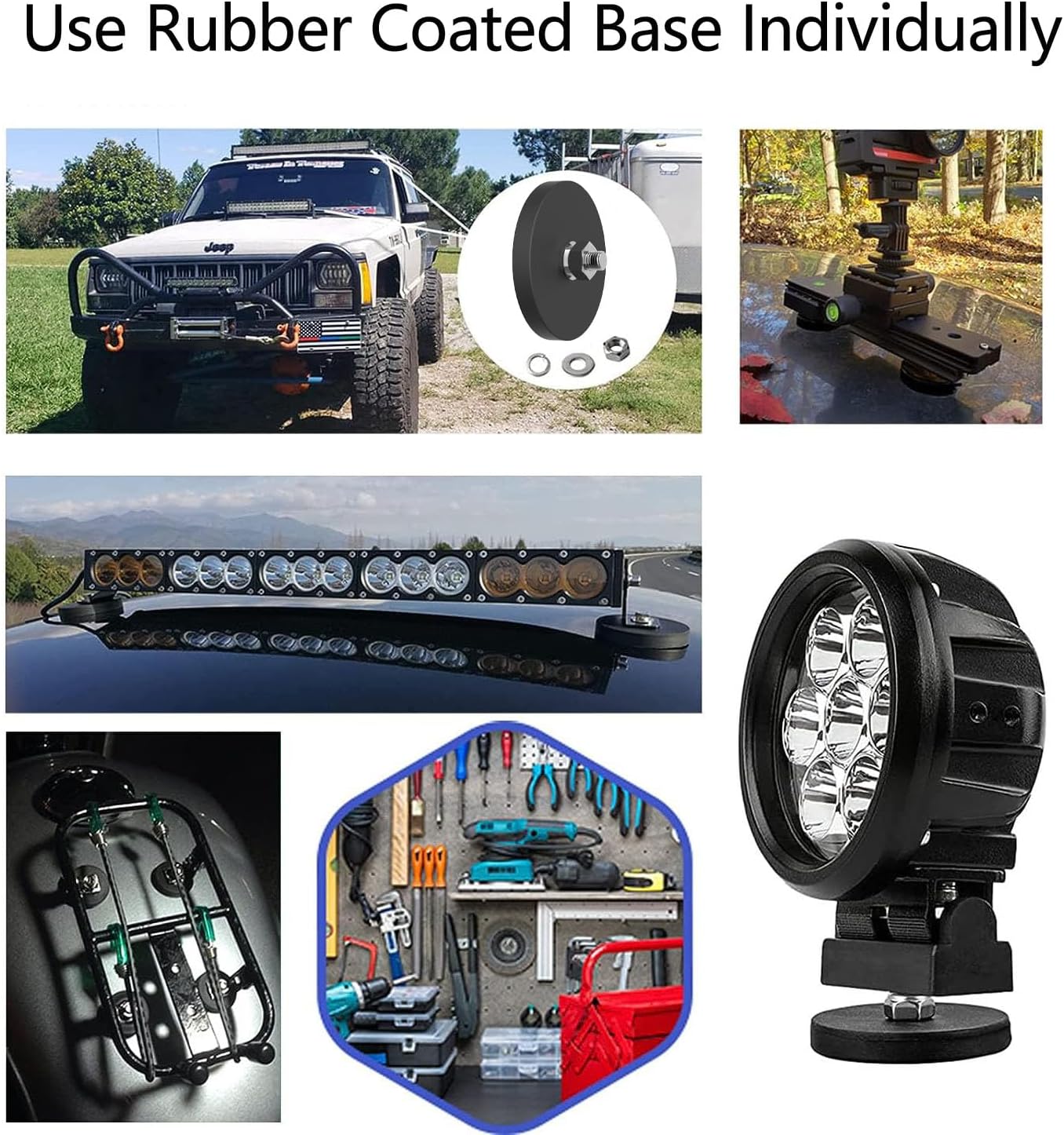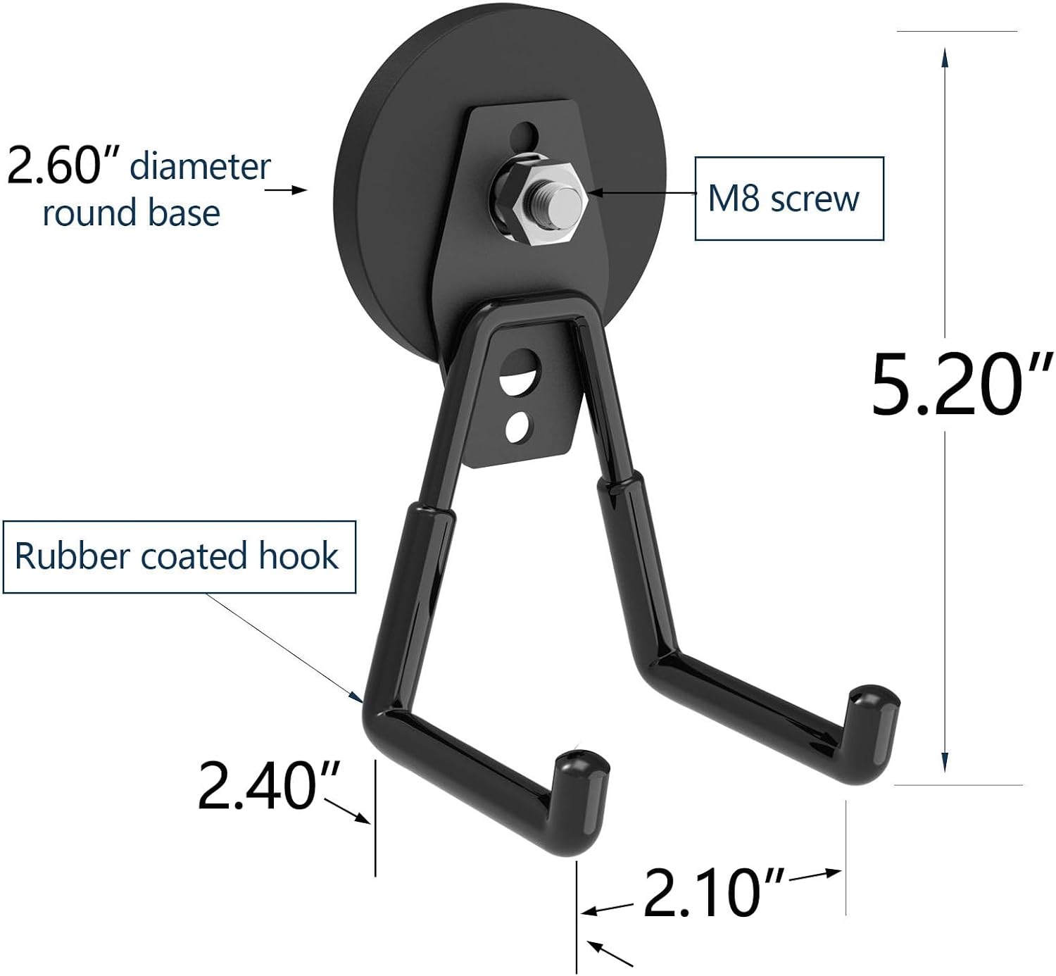 - š§²[Big Storage Magnet Hooks]: These jumbo pack hooks has a strong 3.46-inch or 2.60-inch magnet base with a threaded bar, nut, spacer, and a coated hook. We tested it, and this large L-shaped magnetic hook can hold EV chargers, two gallons of bottled water, various garage tools, drills, and toolboxes.