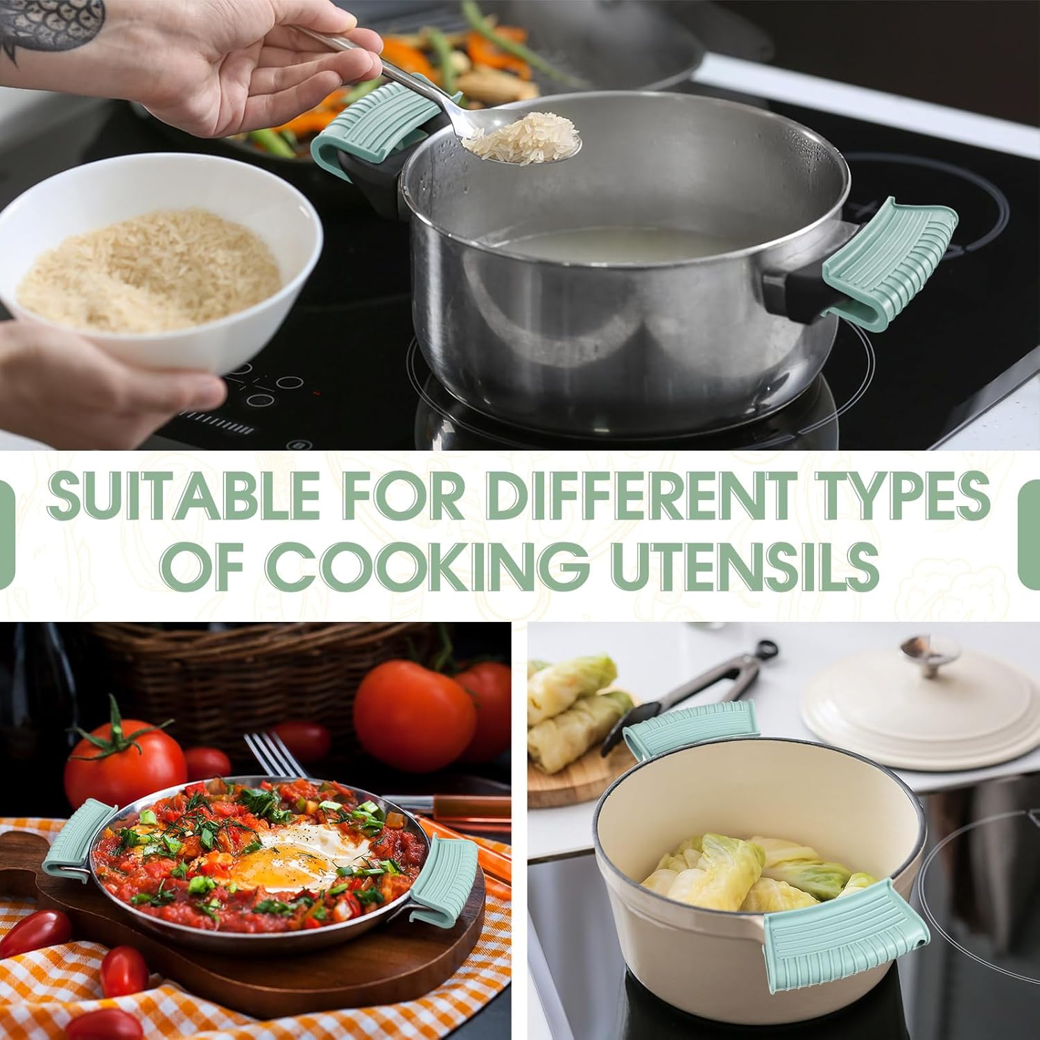 Patelai 4 Pcs Silicone Assist Hot Pan Handle Holder Pot Handle Covers for Cast Iron Skillets Holder Sleeve Nonslip Heat Resistant Pan Cover for Enameled Griddles Casserole Frying Cookware(Mint Green)