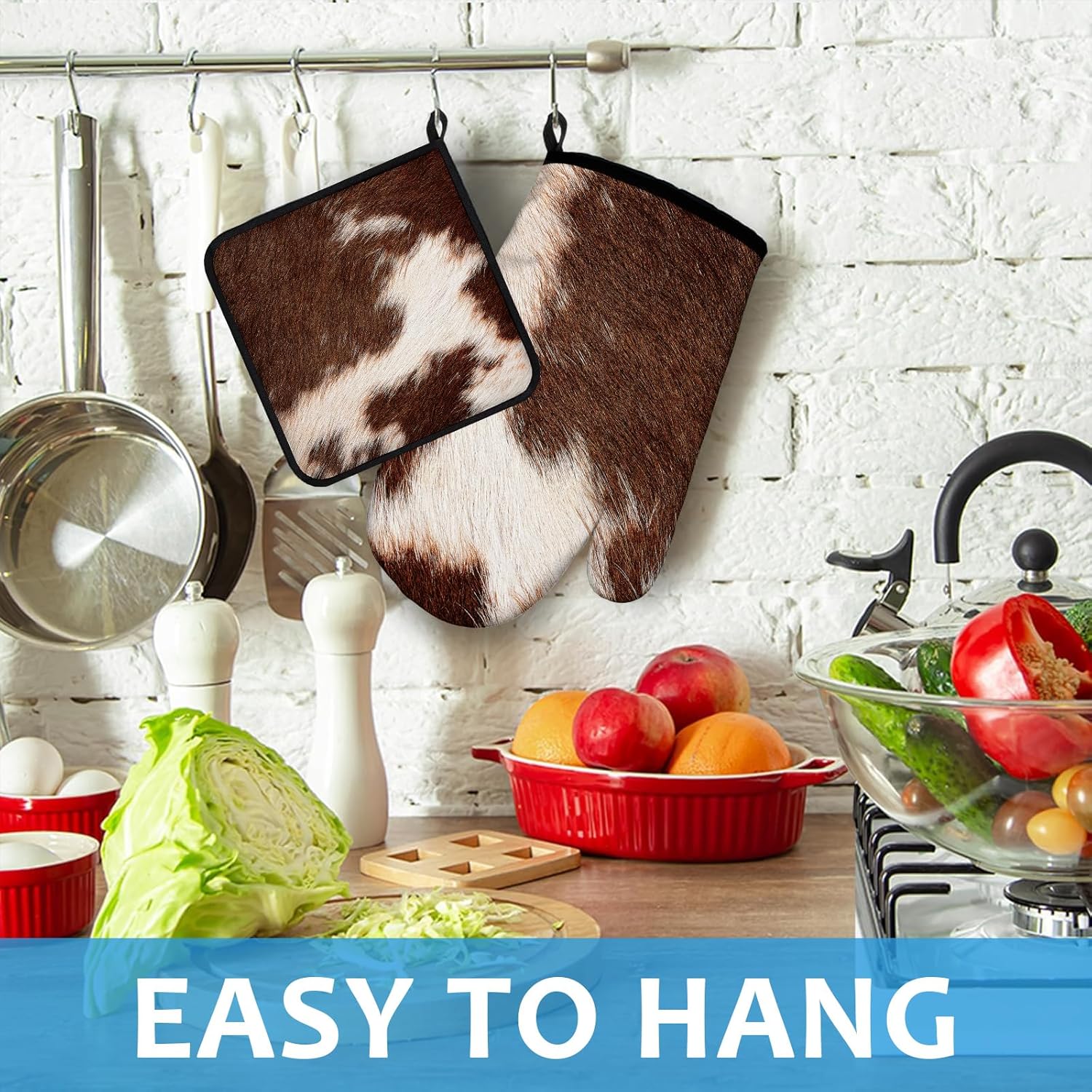 Brown Cow Print Oven Mitts and Pot Holders Sets Heat Resistant 4Pcs Potholders Oven Gloves Hot Pads for Kitchen Baking Cooking Grilling BBQ