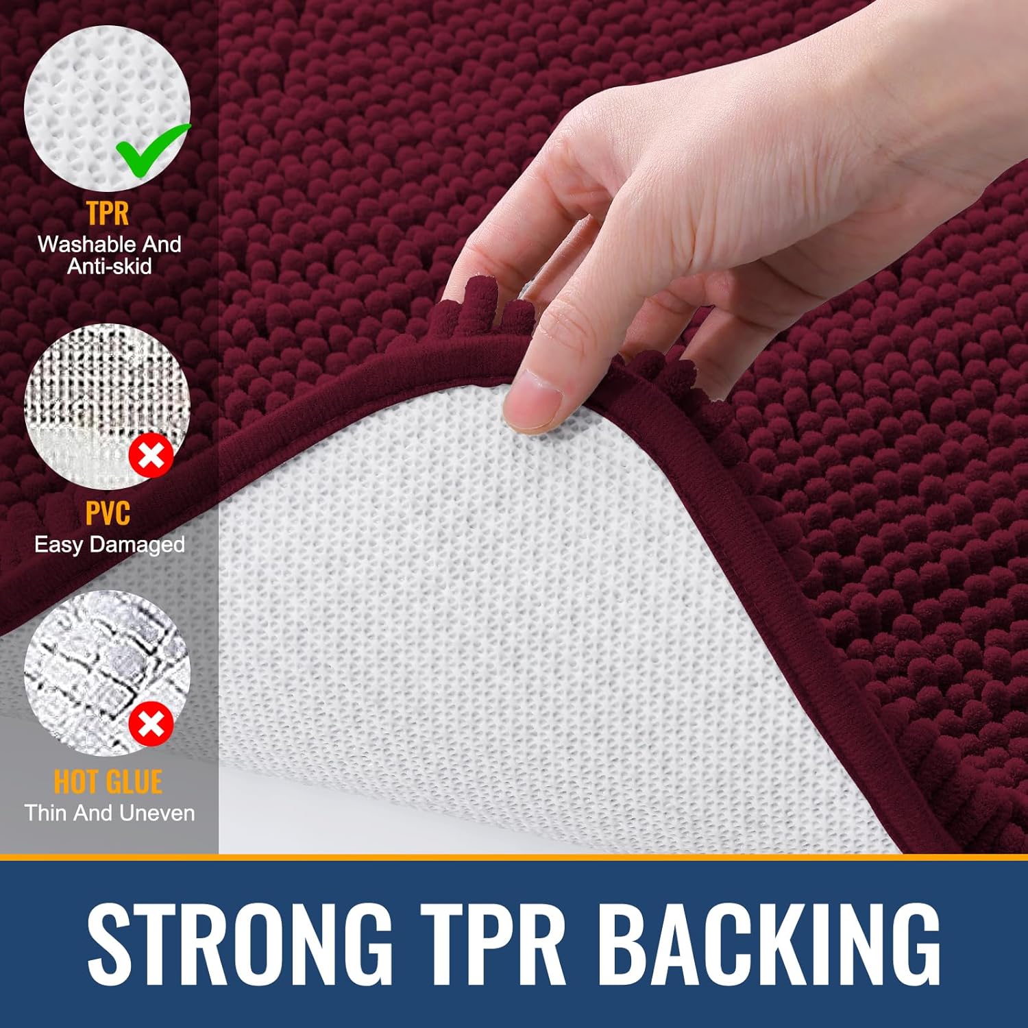 Arotive Bathroom Rugs 24x16, Extra Soft Absorbent Shaggy Chenille Bath Rugs, Machine Washable Rubber Backing Non-Slip Bath Mats for Bathroom Floor Tub and Shower, Home Decor Accessories, Burgundy