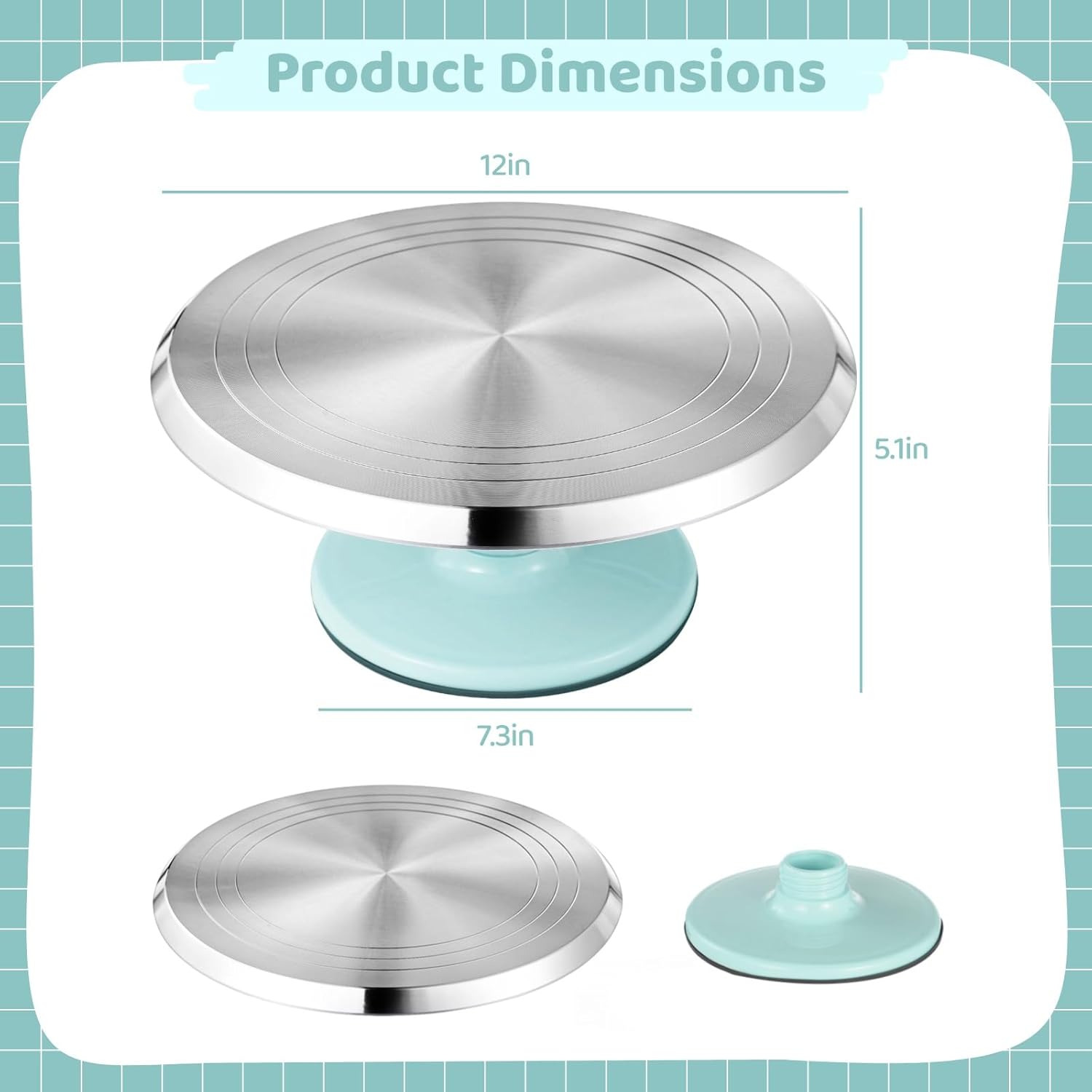 - Sturdy Aluminum Alloy Platform: cake turntable crafted with a sturdy aluminum alloy rotating plate with non-slip design; metal cake turntable ensures smooth rotation for precise cake decoration; built to withstand frequent use without warping or scratching