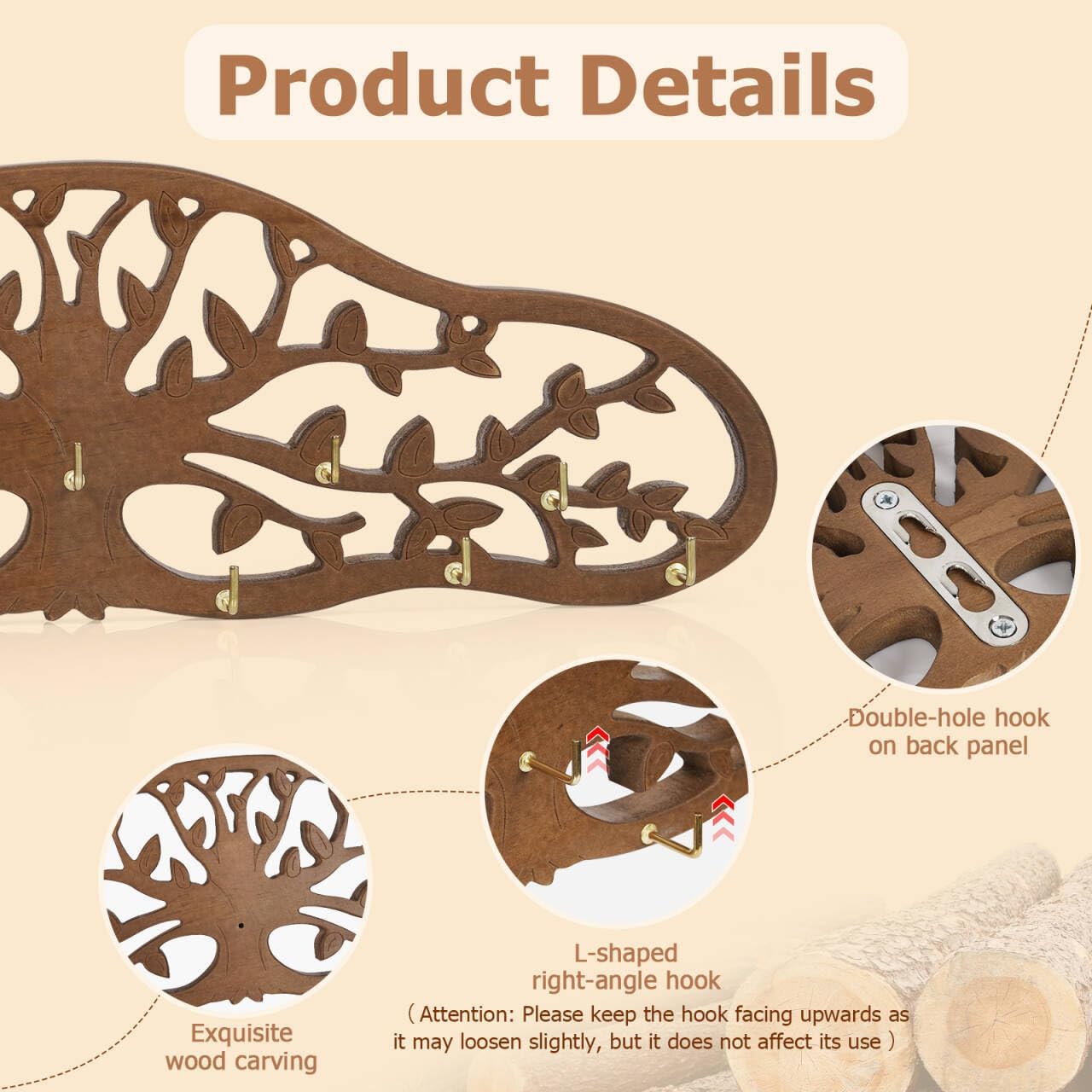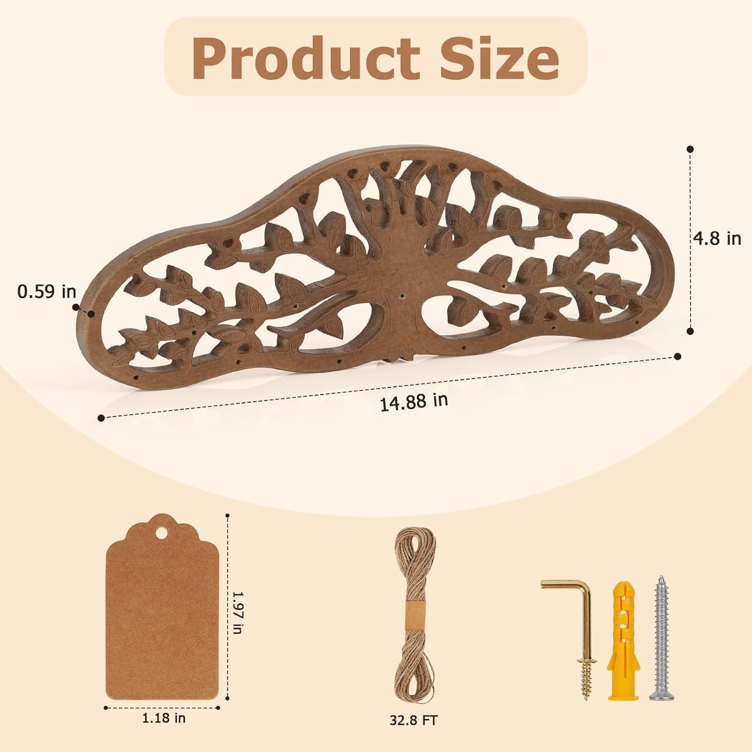 Liitrton Herb Drying Rack Hanging, Wall-mounted Drying Rack for Herbs, Wooden Tree Decor Design, Holds 11 Hooks with Rope and Kraft Labels, Space-saving Plant Herb Flower Dryer, Wall Art Decor