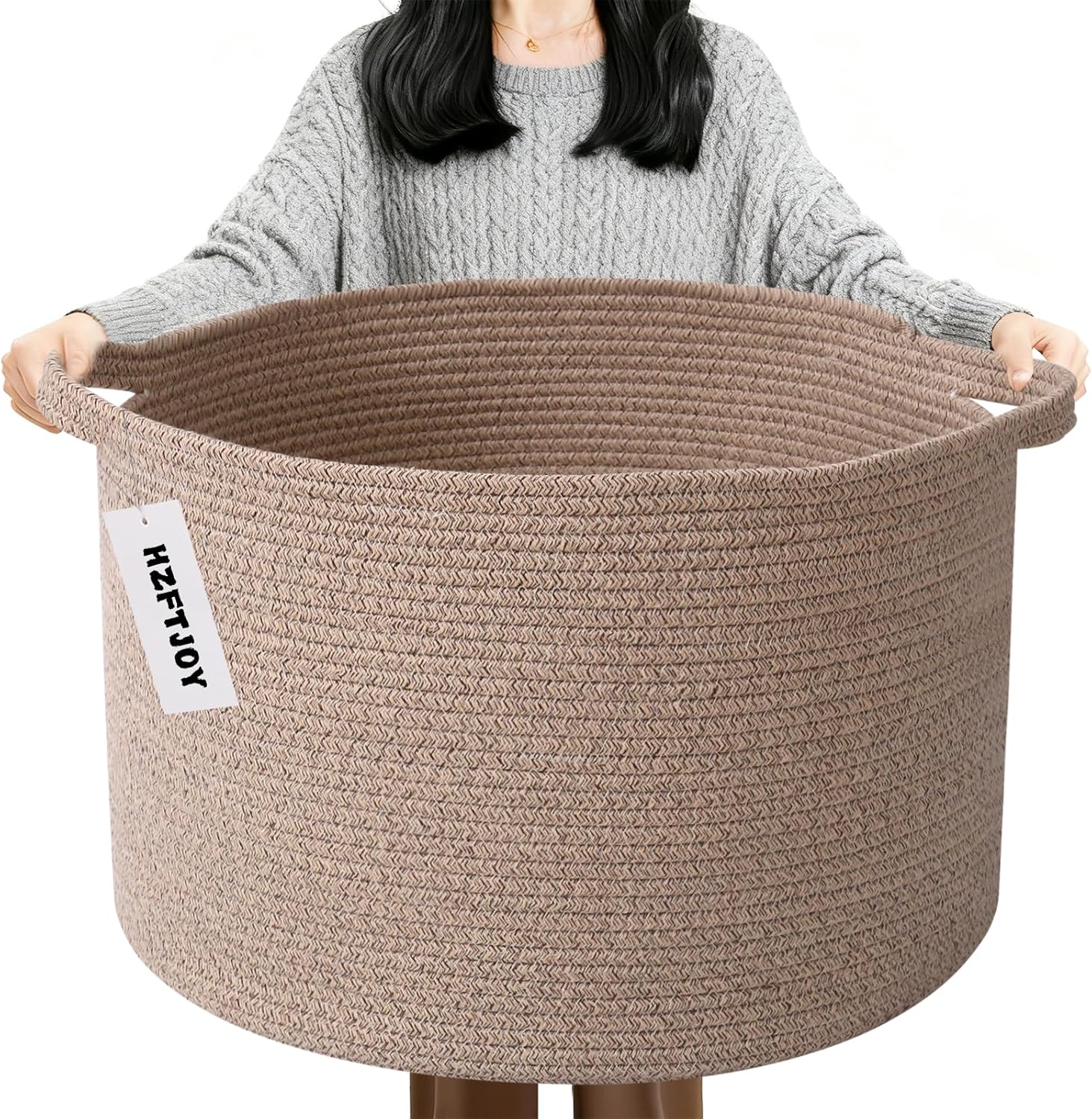 - 【Sturdy Handle Design】The two built-in handles are sturdy, easy to carry or move and allow you to pack up their alone. The woven basket is made of cotton rope, which is soft yet holds its shape well.No need to worry about scratching clothes or hurting skin, suitable for families or pets