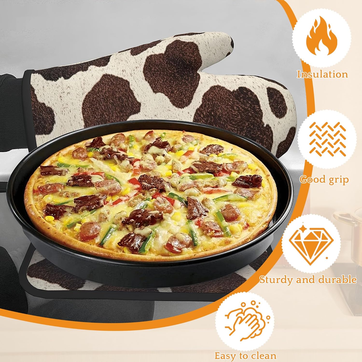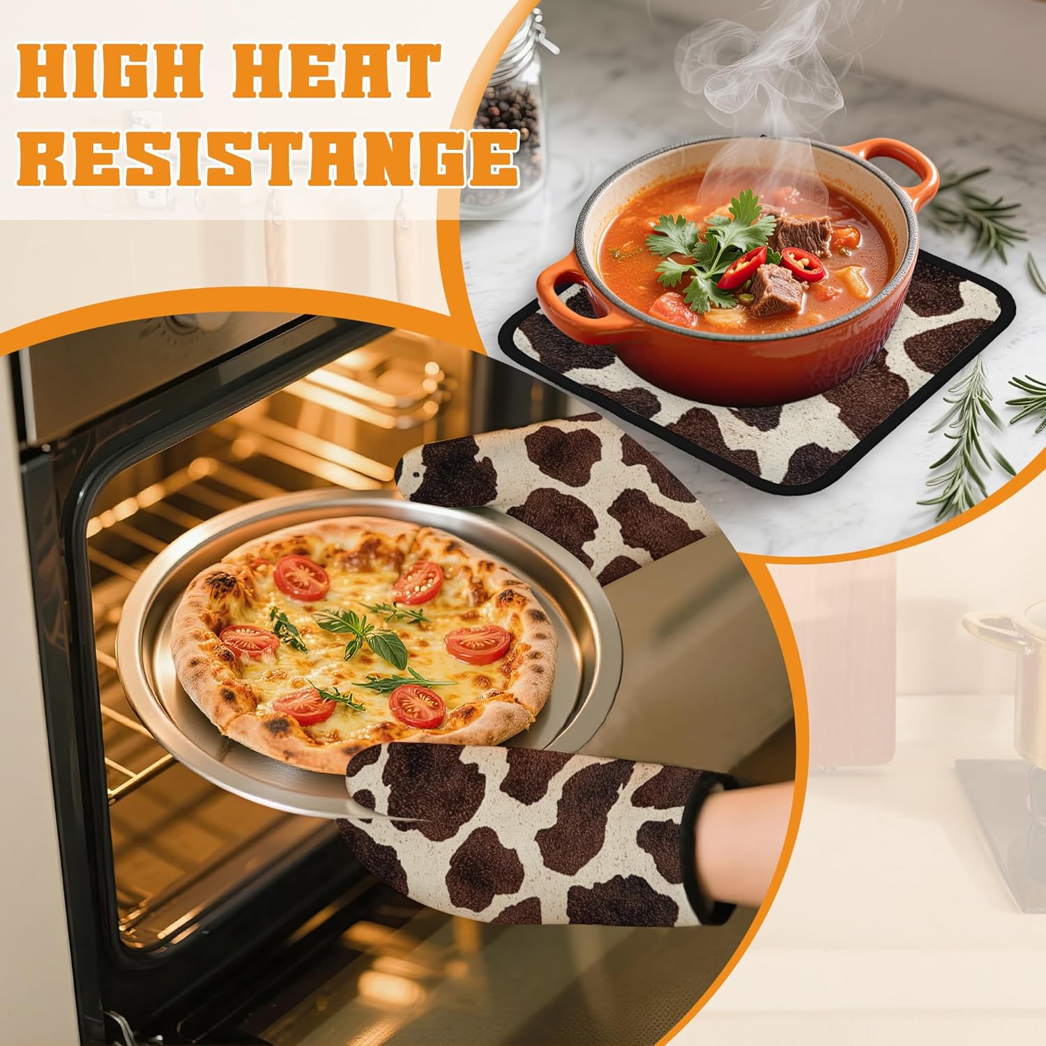 - Stylish Design:Brown Cowhide Cow Skin patterns bright colors,unique prints are exquisite decorations for your kitchen.Brightly colored designs will surely impress your guests and enhance the atmosphere of your kitchen,making your kitchen less monotonous and more lively.
