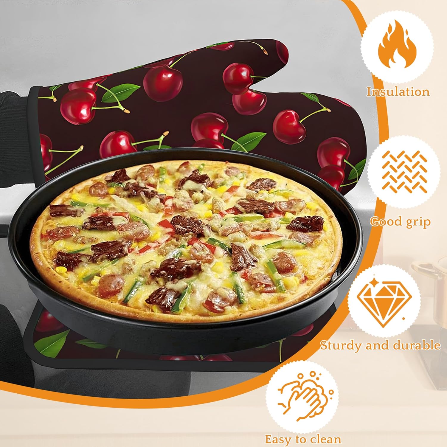 - Stylish Design:Cherry Red patterns bright colors,unique prints are exquisite decorations for your kitchen.Brightly colored designs will surely impress your guests and enhance the atmosphere of your kitchen,making your kitchen less monotonous and more lively.