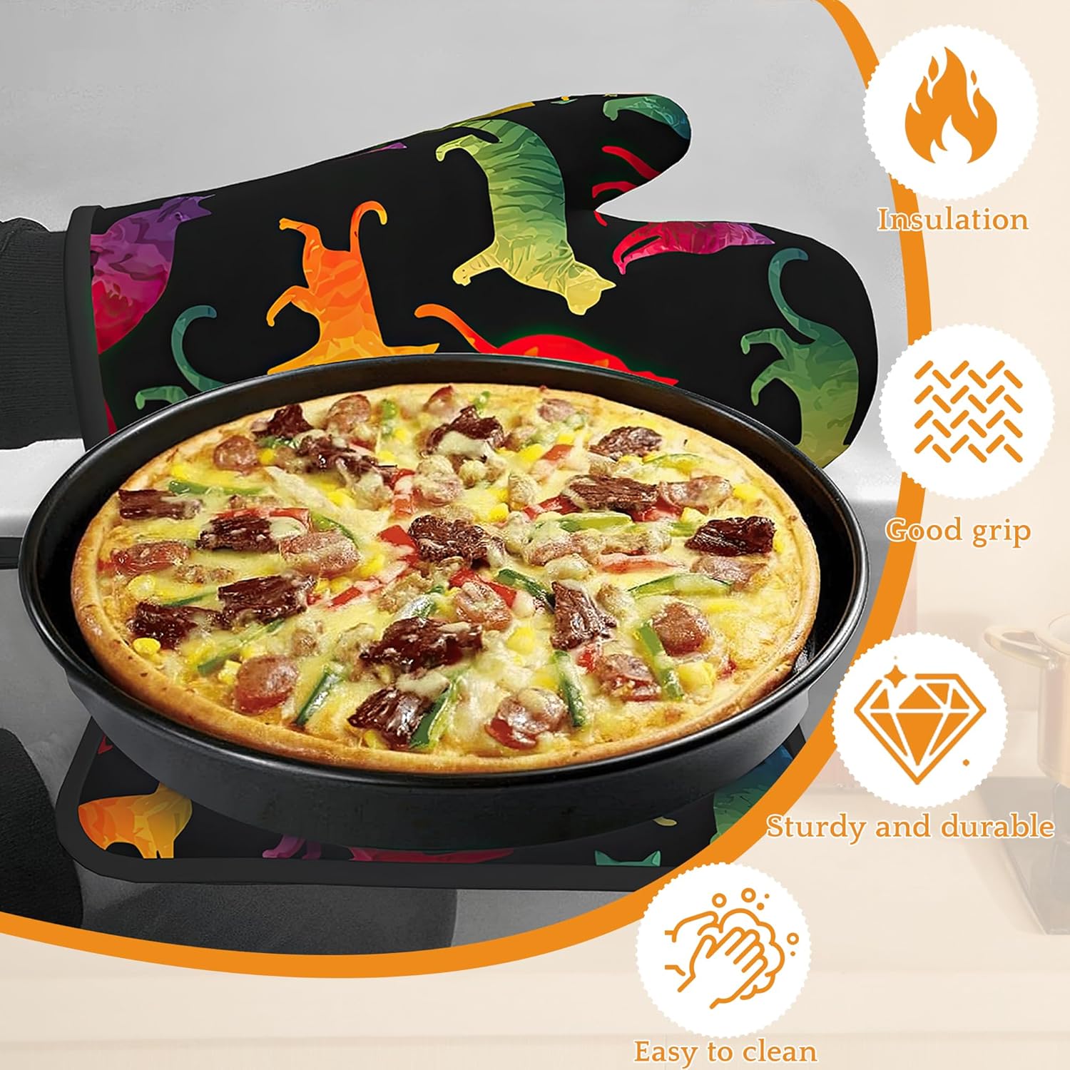 Funny Colorful Cat Oven Mitts and Pot Holders Set,Kitchen Decor Heat Resistant Non Slip Hot Pads and Oven Mitt for Chef Cooking Baking BBQ Mom Girl Gifts(4 Piece Set)