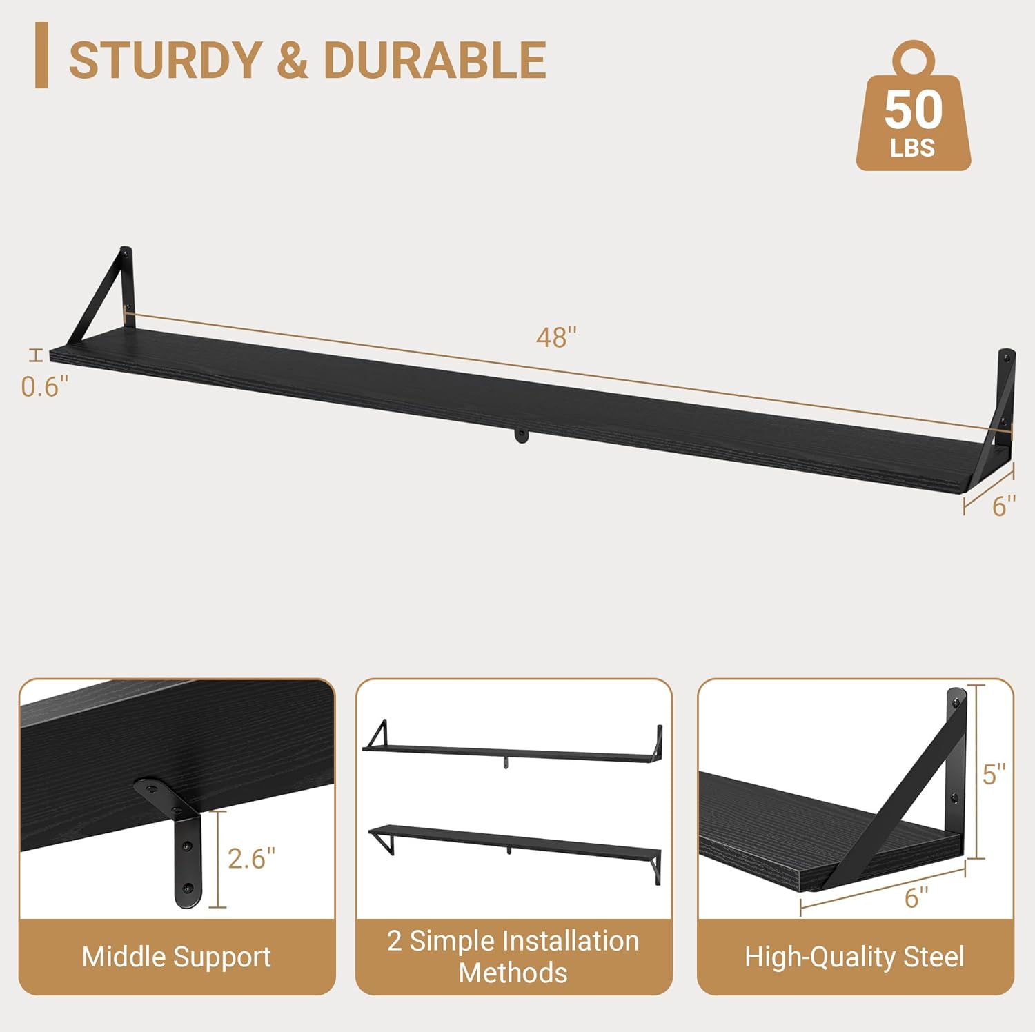 Heimlove 48 Inch Large Wall Bookshelves Set of 3, Wall Mounted Bookshelves,Heavy Duty Wooden Shelves for Living Room,Bedroom,Kitchen,Laundry Room Storage & Decor