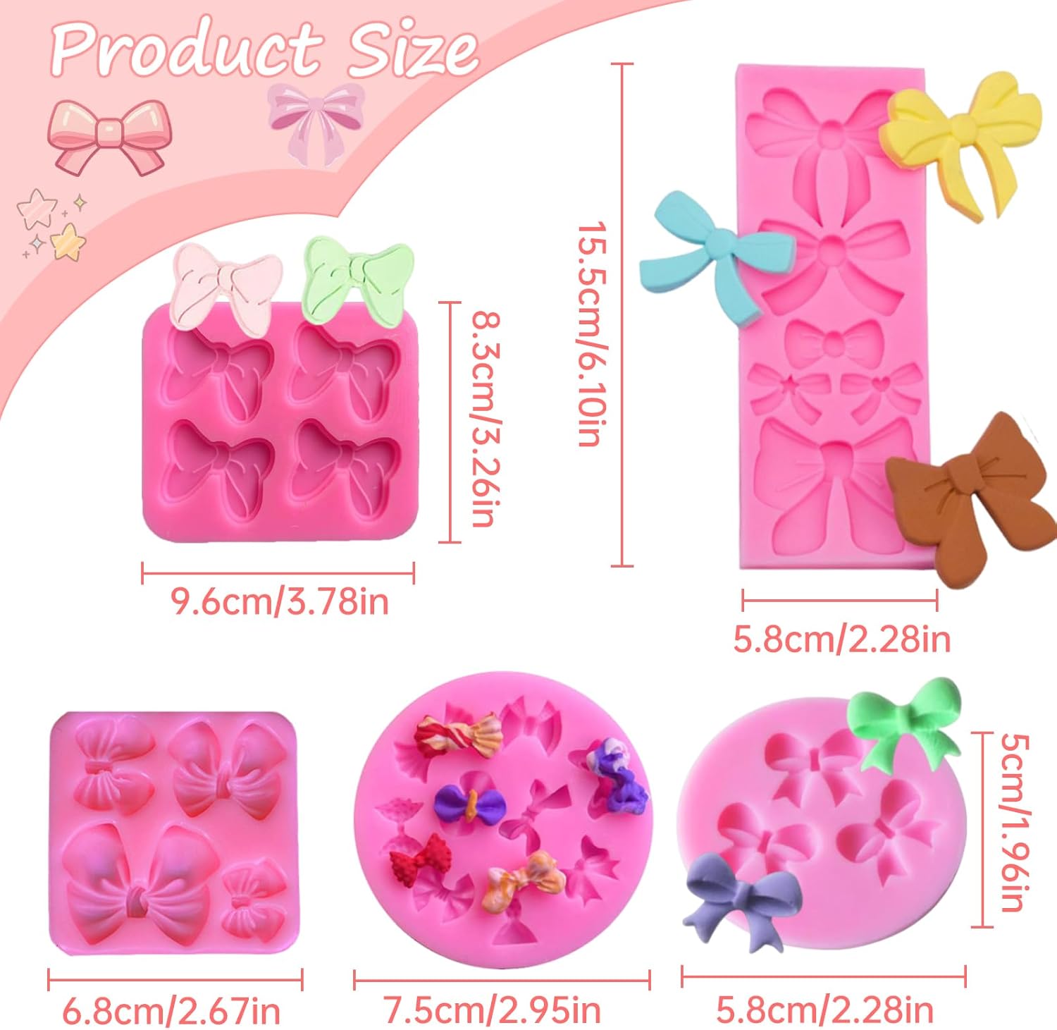 - Versatile Bow Silicone Molds: Package comes with 5 bow molds, featuring different bow shapes & sizes can meet your different production and decoration needs. Perfect for creating cake toppers, chocolates, and fondant decorations