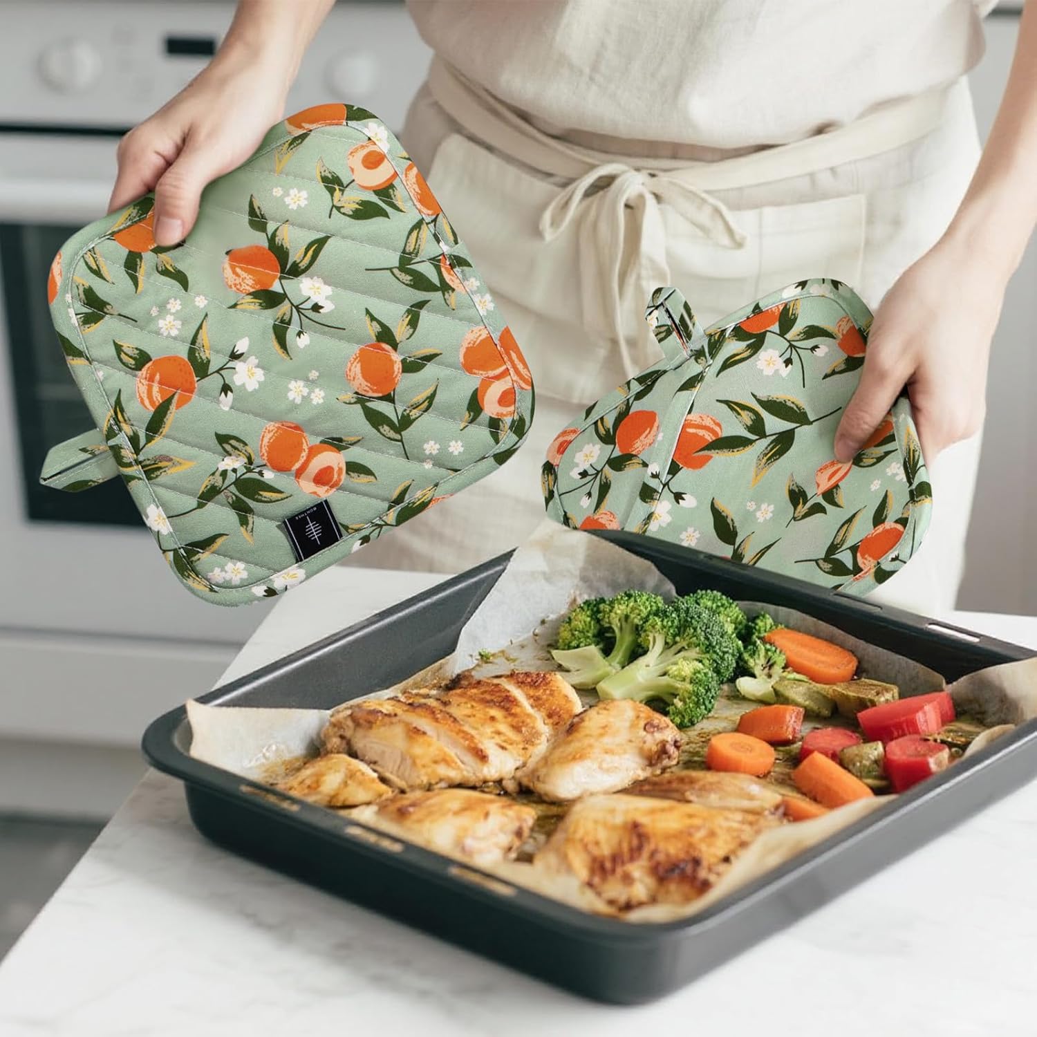 - [Heat-resistant Material] Each pot holder is made from high-quality, heat-resistant materials that can withstand temperatures up to 356℉/180℃. The thick padding ensures maximum insulation and prevents heat from reaching your hands, making it safe and comfortable to handle hot cookware.