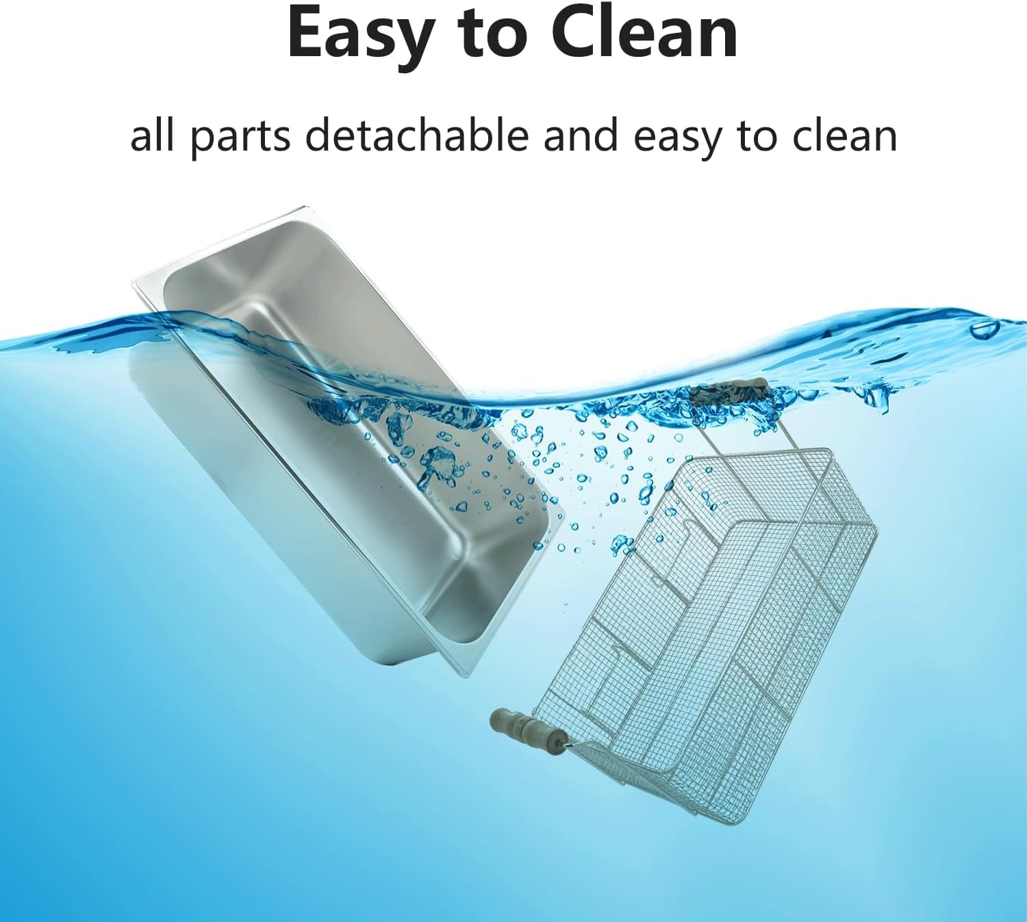 - Robust and Easy To Clean - This commercial deep fryer is made from heavy duty thickened 0.6mm stainless steel for a robust construction. The thickened tank is durable and the deep fryer has removable inserts for quick cleaning. Everything is dishwasher safe except for the heating element