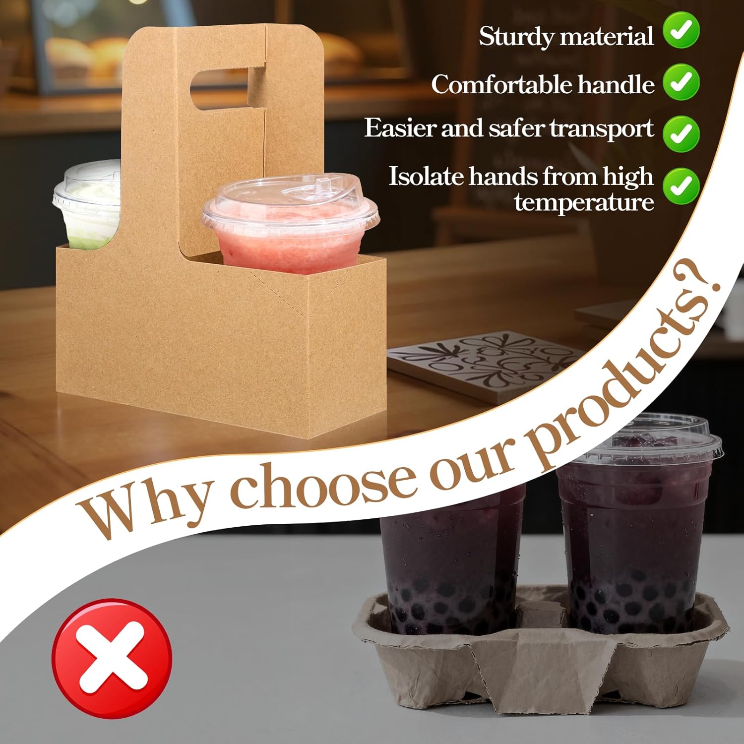 - 【Effortless Assembly】Our paper drink carriers can be folded and assembled in a few minutes. Seamlessly combine two carriers to create a 4-cup drink carrier. Unique push-in fold the corner to secure any size cup to prevent it from sliding during delivery.