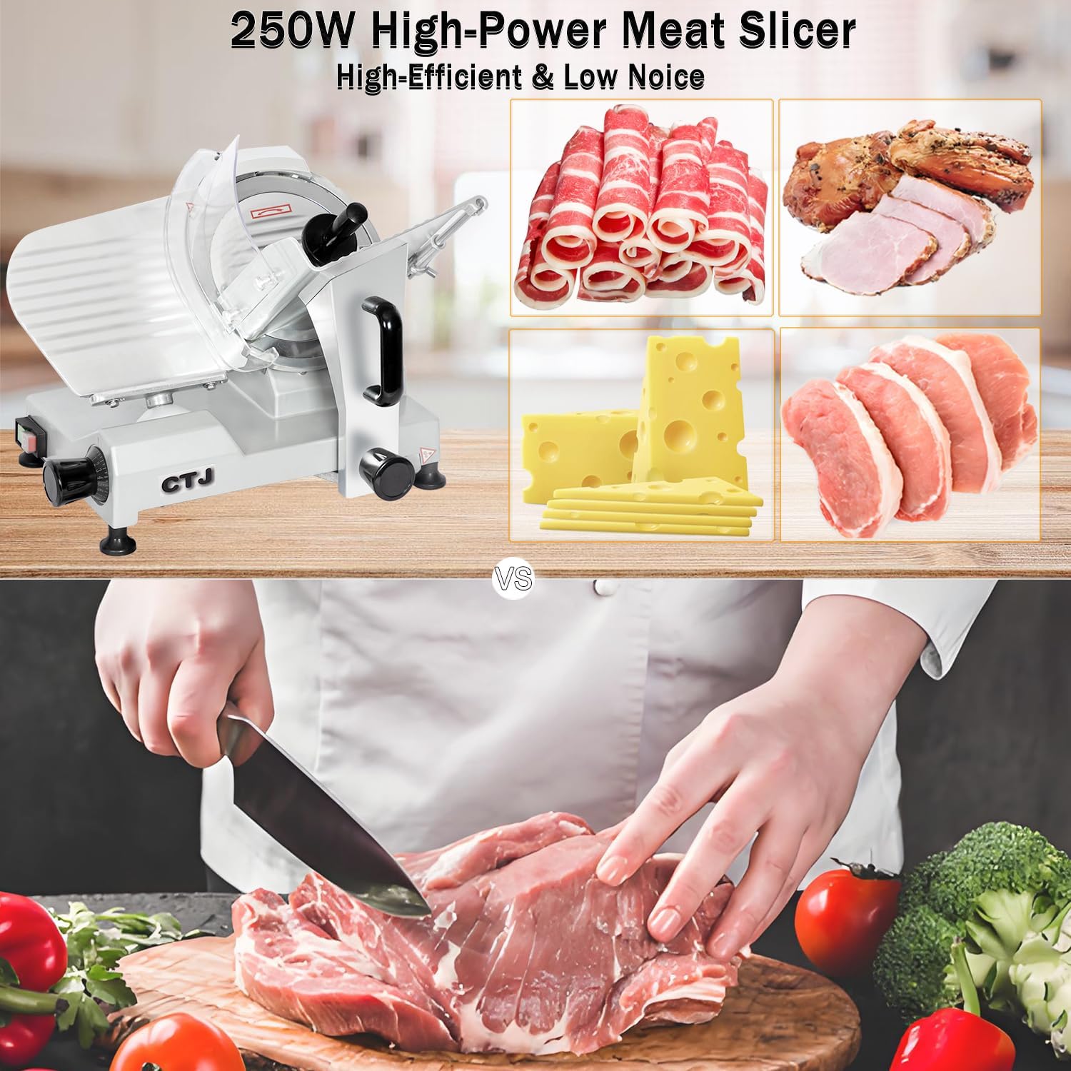 CTJ Commercial Meat Slicer 12" Electric Deli Slicers 250W Meat Cutter Machine (0-0.62") Adjustable Thickness Food Slicer with Cut-Resistant Gloves for Vegetables, Hard Bread, Cheese, Ham