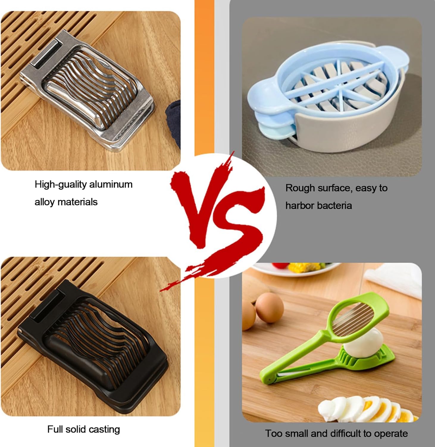 - ๐ช Durable Heavy-Duty Aluminum Body Crafted from premium cast aluminum, this egg cutter is built to last. Its robust structure resists bending or warping, ensuring long-term performance in any kitchen.