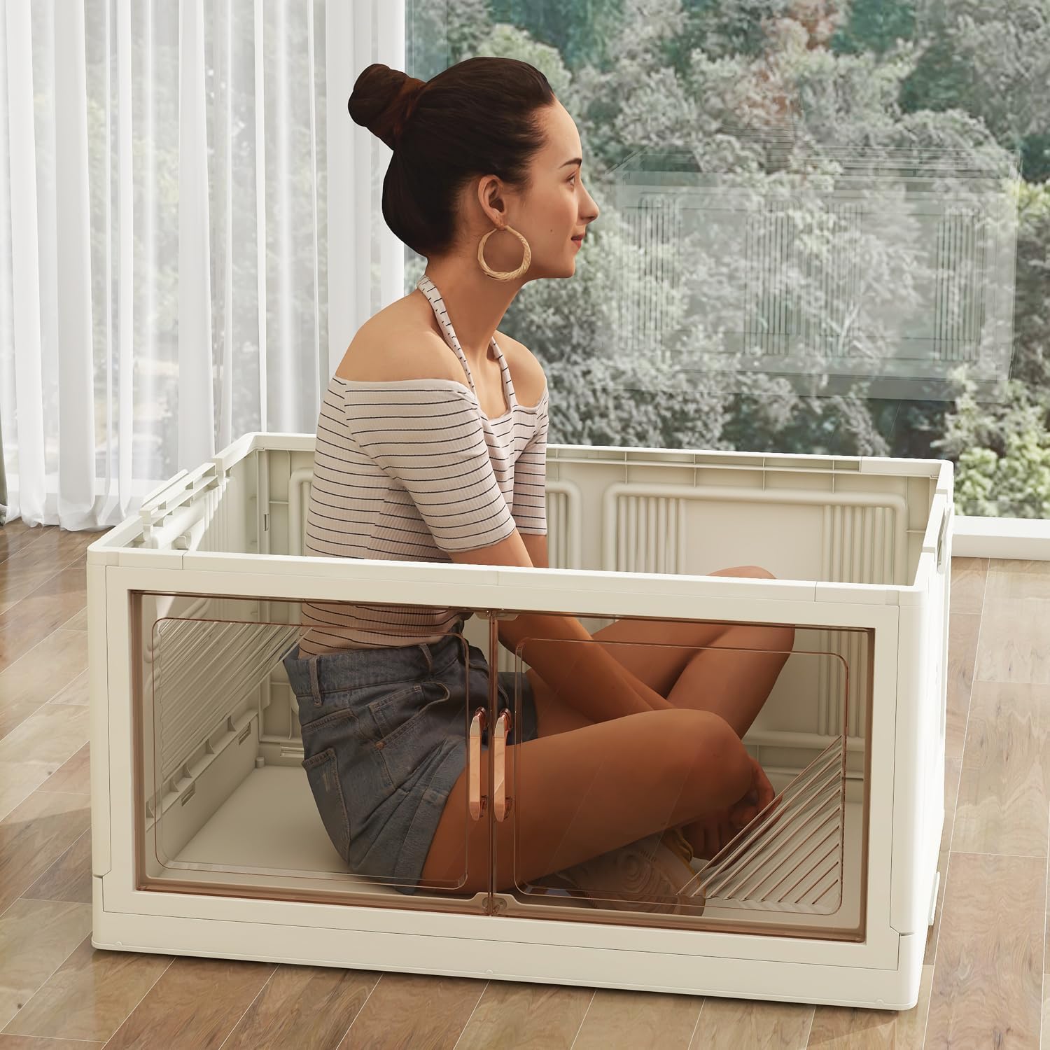 - 【Extra Large Capacity】These folding boxes come in a generous size of 36 gallons, offering ample storage capacity. With a robust design, they can withstand up to 155 pounds (70 kg) of weight. The bins feature handles on both sides, making them easy to lift and move around as needed. They're perfect for keeping your home organized and clutter-free, providing an ideal solution for storing various items efficiently.