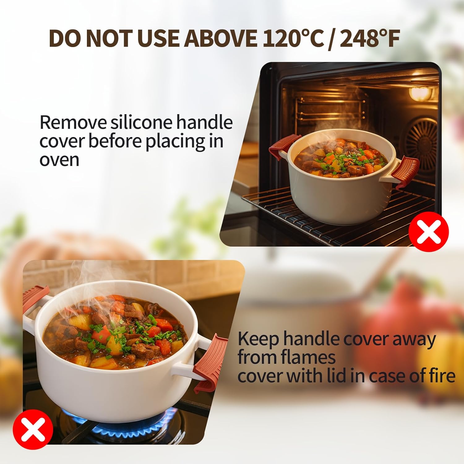 - Premium Heat-Resistant Silicone Material: Crafted from high-quality silicone, these handle covers withstand temperatures up to 120°C, providing excellent heat insulation and protecting your hands from burns. Flexible and durable, they are perfect for daily cooking and baking needs.
