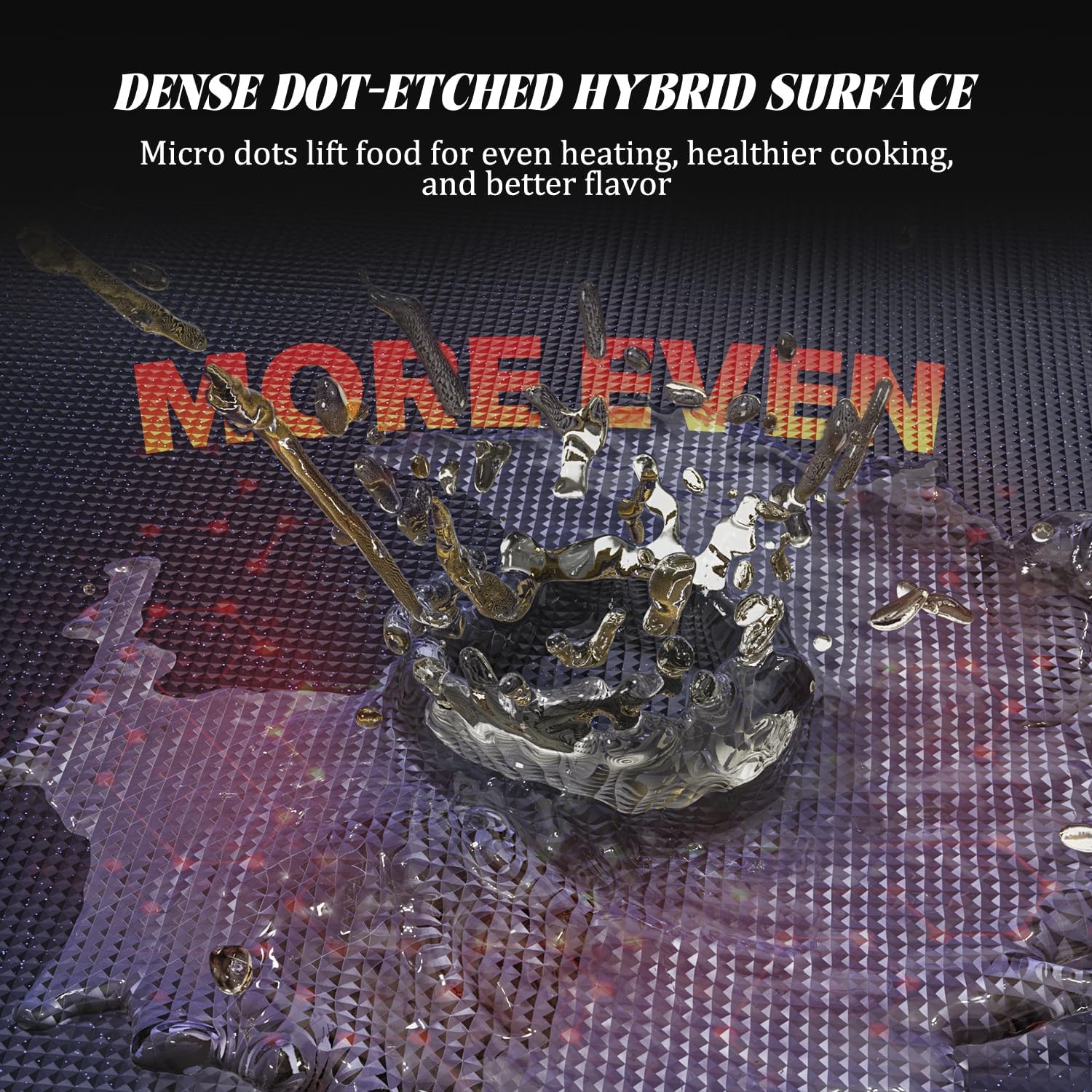 - Healthy & Non-Toxic Skillet: Our hybrid ceramic skillet has been independently tested and verified to be free from 509 known PFAS substances, is FDA compliant, and is PTFE-free. Made from food-grade, natural materials, our ceramic coating never releases harmful fumes even if accidentally overheated—safe for birds, children, and pregnant women—while its dense dot-etched surface lets you cook with 35% less oil for healthier, more sustainable meals