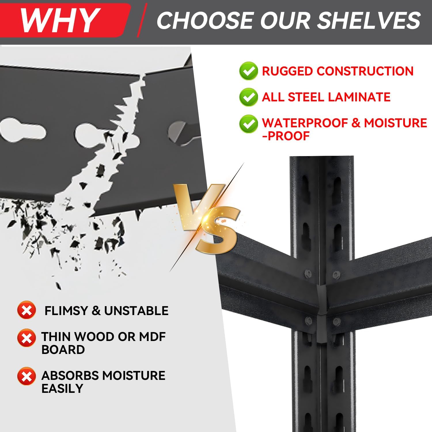 - Rust-Resistant Steel Construction: Crafted from powder-coated steel, this basement storage shelves resists rust, scratches, and corrosion, ensuring long-lasting performance in a variety of environments, including garages, workshops, and warehouses