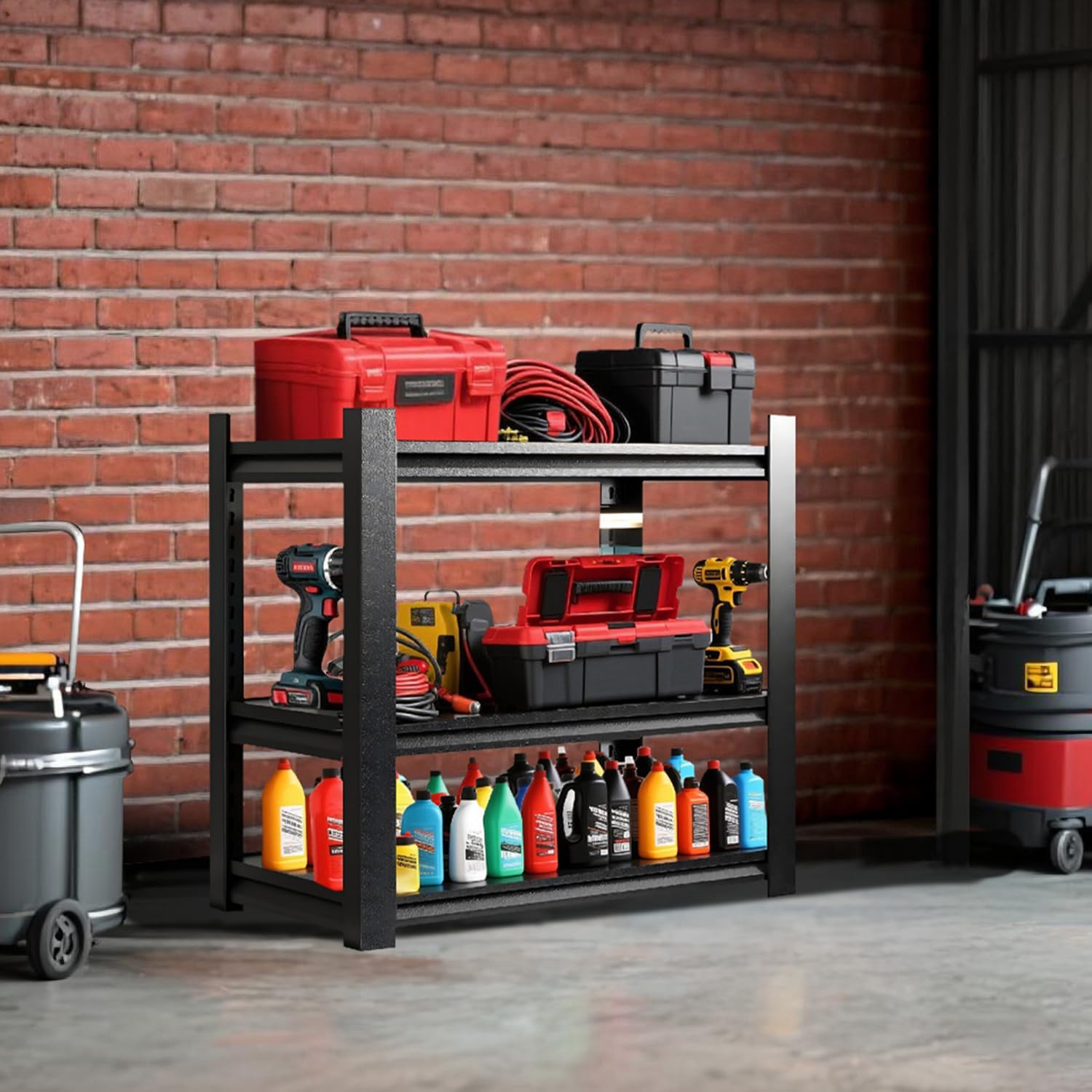 3-Shelf Metal Storage Shelves, 660 lbs Garage Shelving Unit, Heavy Duty Storage Rack, Adjustable Industrial Shelving, 34" W x 18" D x 31.5" H for Kitchen Pantry Basement, Black