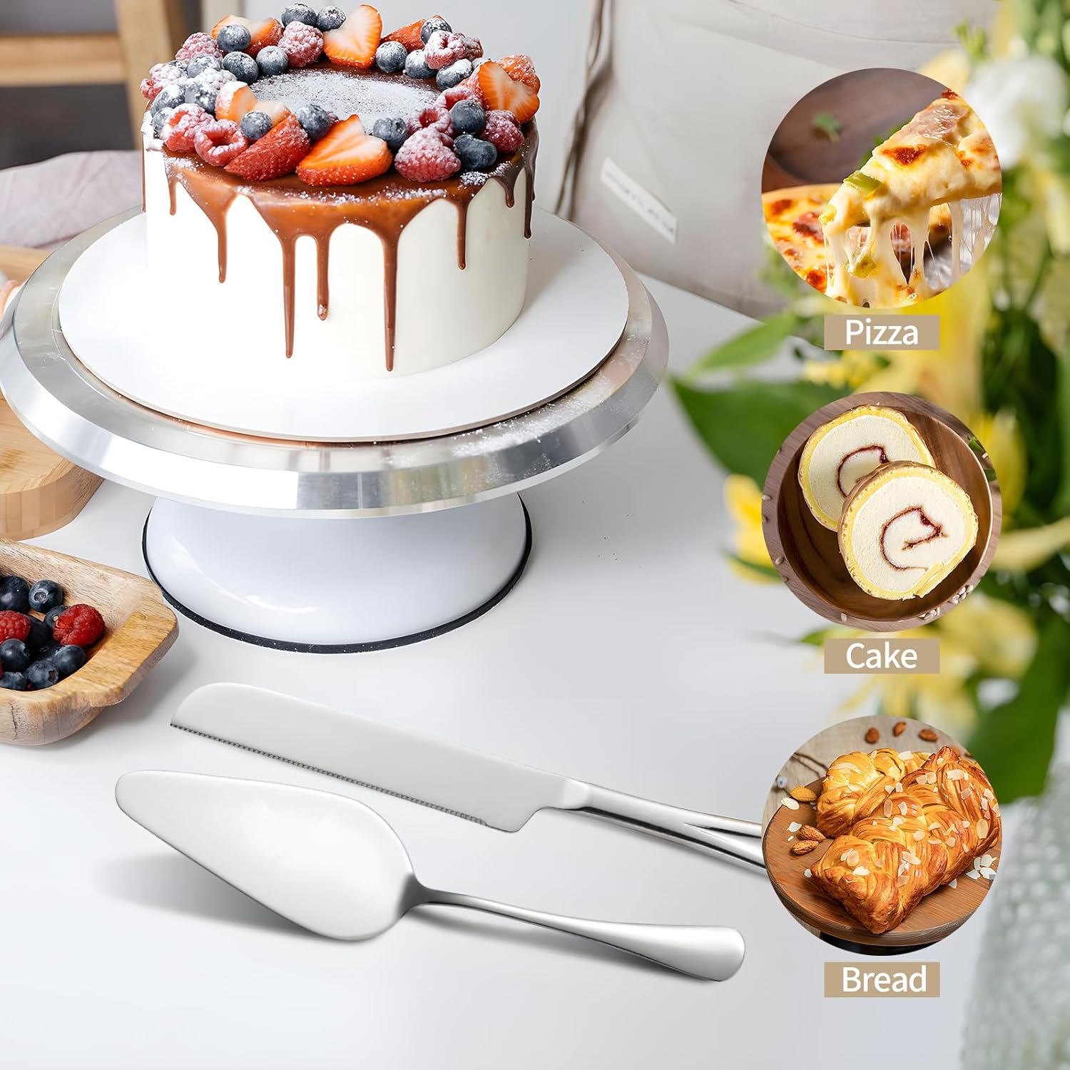 - Effortless Cutting Experience: Featuring an extended blade with uniform serrations, the knife effortlessly slices through large cakes, while the widened serving panel ensures stability during cake transfer. Ergonomic handles provide comfort and ease during use.